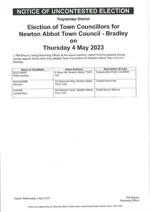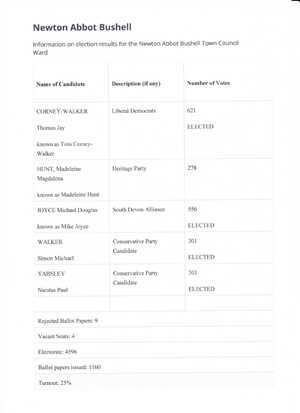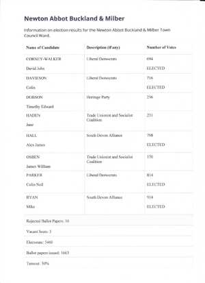 Results for the Newton Abbot Buckland & Milber Ward 2023