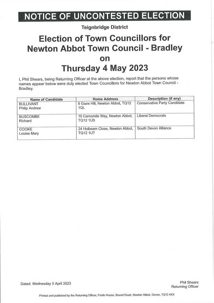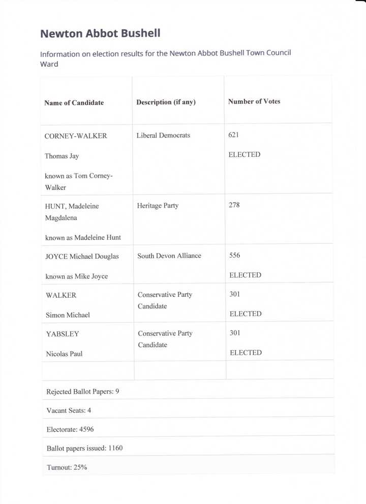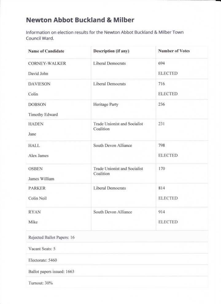 Results for the Newton Abbot Buckland & Milber Ward 2023