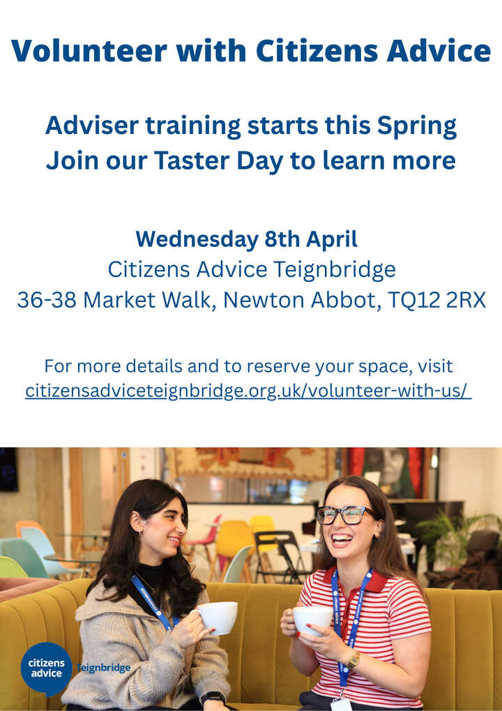 For more information or to book a space see https://citizensadviceteignbridge.org.uk/volunteer-with-us/
