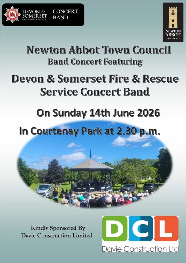 The Devon & Somerset Fire & Rescue Service Concert Band will be playing in Courtenay Park on Sunday 14th June 2026.