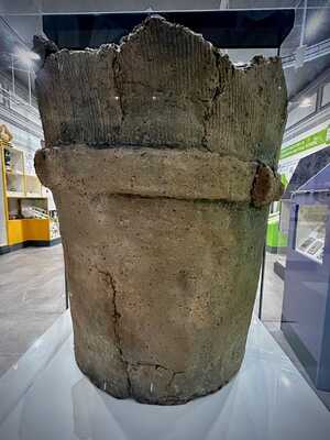 Evidence indicates the clay may have been sourced from the River Lemon, with the urn constructed using a traditional coil technique. It features decoration unique within Devon, including straight sides, six external lugs and a combed pattern on the rim not seen on other known examples from this period.