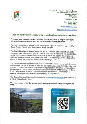 Devon Countryside Access Forum - applications invited for members