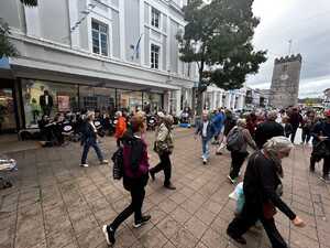 Shoppers in Courtenay with Spectrum Music Playing Live